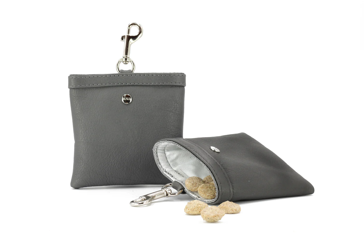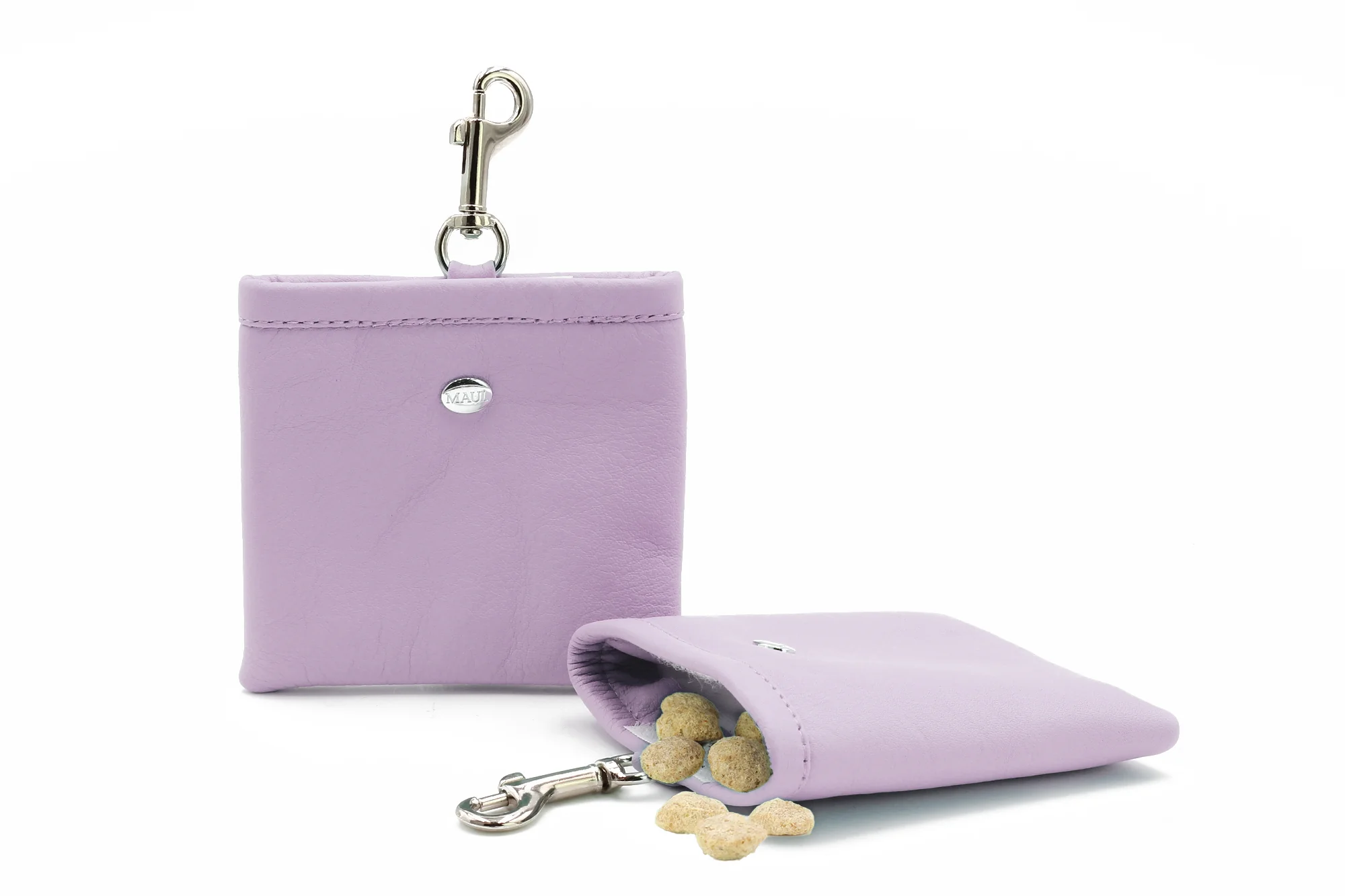 Dieser elegante Leckerlibeutel aus feinstem Nappaleder überzeugt durch stilvolles Design und durchdachte Funktionalität. Die wasserabweisende Innenauskleidung lässt sich ganz einfach reinigen – sogar mit Desinfektionsmittel. Ein Karabiner sorgt für sicheren Halt an Gürtelschlaufe, Tasche oder Leine. Der praktische Klettverschluss ermöglicht schnellen Zugriff und hält die Leckerlis zuverlässig verstaut. Erhältlich in zarten Pastelltönen wie Flieder, Mint und Ice Blue – ideal kombinierbar mit passenden Halsbändern, Leinen und Poo-Bags für einen harmonischen Look.